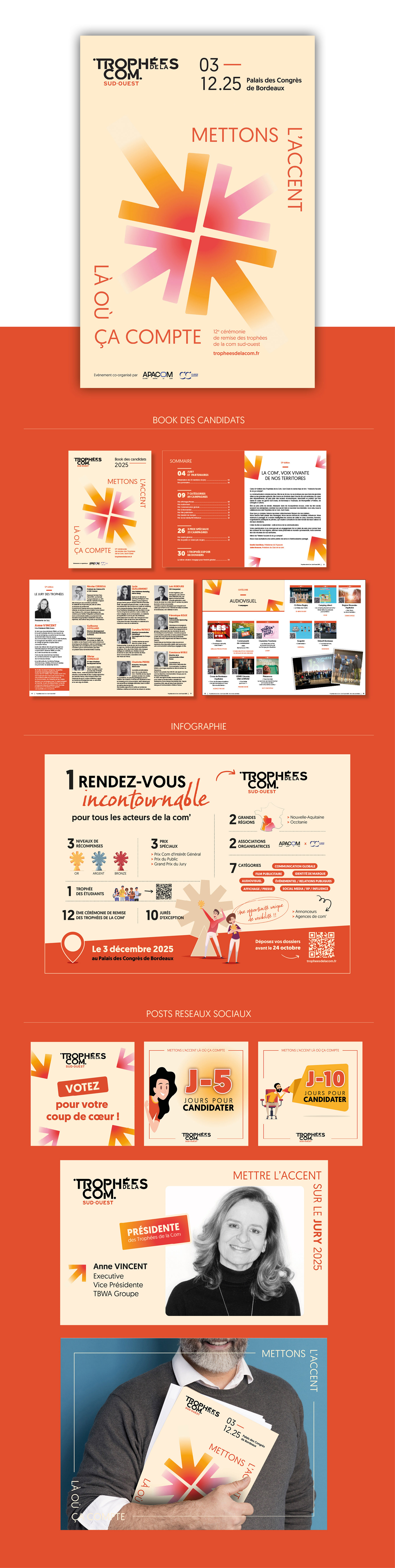 Membre active et bénévole au sein de l’APACOM, je contribue à l’organisation des Trophées de la Com’ Sud-Ouest au sein de la commission dédiée. Qu’il s’agisse d’une campagne sociale, d’un événement ou d’une identité de marque audacieuse, chaque projet trouve sa place pour être mis en lumière. Ces trophées valorisent la richesse et la diversité des métiers de la communication, du print au digital, en passant par l’audiovisuel et les relations publiques.